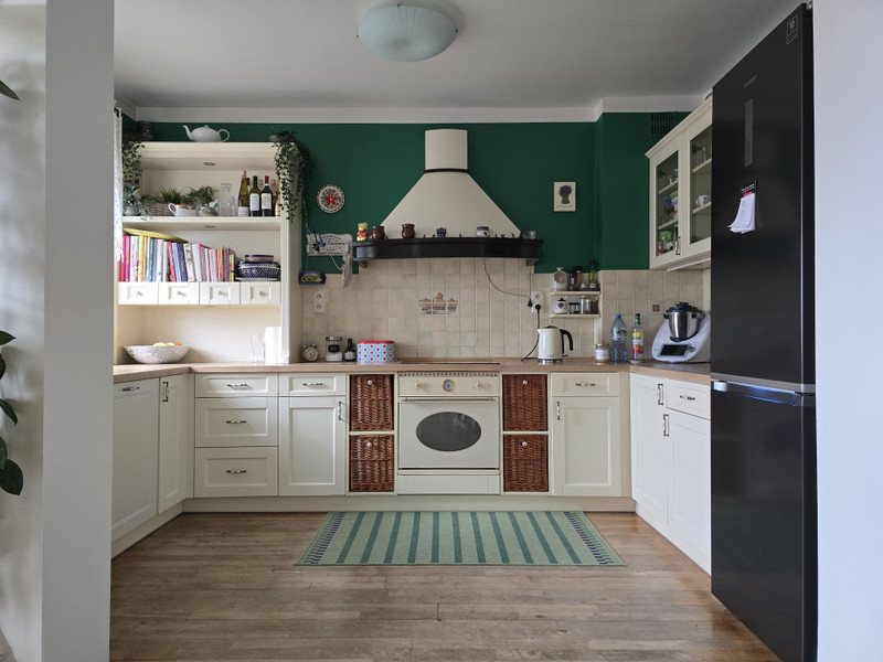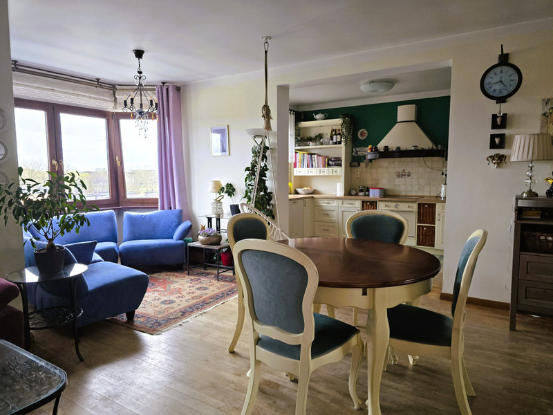 Salon z oddzielną kuchnią otwartą, oferują przestrzeń o powierzchni ok. 37m2. Z okien (ekspozycja wschodnia) rozpościera się widok na bujną zieleń, Pałac w Wilanowie oraz sąsiadującą willową zabudowę. Kuchnia wyposażona jest w płytę oraz piekarnik marki SMEG, zmywarkę marki BOSCH i lodówkę SAMSUNG. Zabudowa kuchenna wykonana solidnie i starannie na wymiar, fronty drewniane, lakierowane.