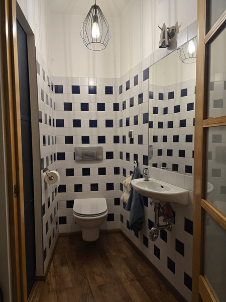 W głębi korytarza, znajduje się kolejne, osobne WC (ok. 2,5 m2) i oddzielna pralnia.