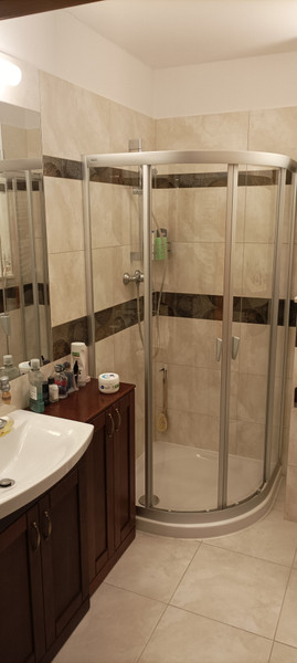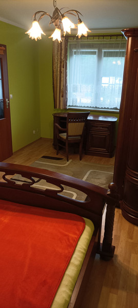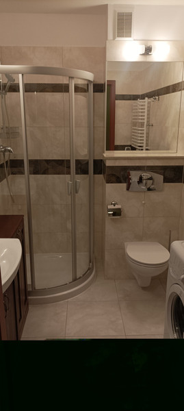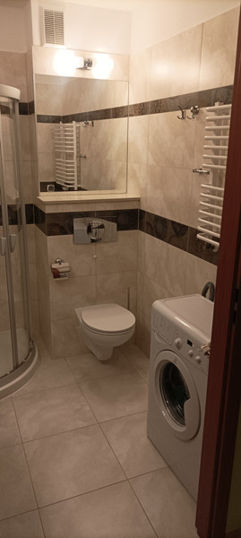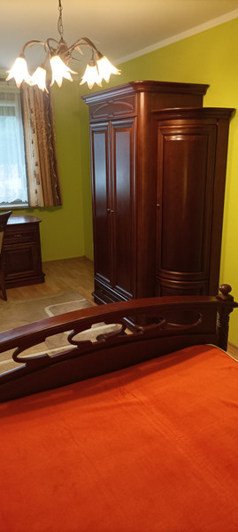 Mieszkanie jest umeblowane wyposażone w sprzęt AGD ( szafy, kredens, tapczan, łóżko, biurko z krzesłem, stół kuchenny + krzesła, fotele, stolik, stolik TV, meble kuchenne, zlewozmywak, ( płyta elektryczna, piekarnik/mikrofalówka, lodówka wolnostojąca, zlewozmywak kamienny z baterią), szafa korytarzowa w stałej zabudowie, meble łazienkowe, kabina prysznicowa z brodzikiem i baterią naścienną, muszla wc wisząca na stelażu podtynkowym, umywalka naszafkowa z baterią,