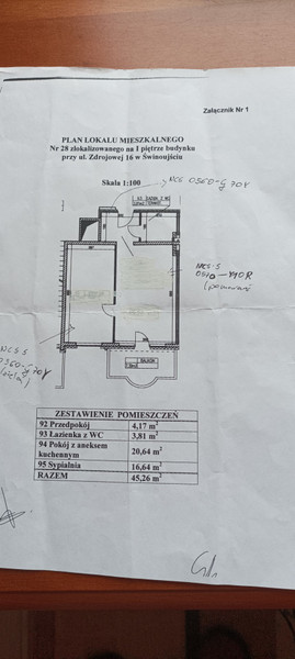 Na powierzchnię mieszkania 45.26 m² składają się: