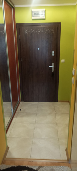 Wymieniono drzwi wejściowe do mieszkania (Firmy Wikęd - Protect) o podwyższonej izolacji akustycznej oraz odporności na włamanie , z systemową ościeżnicą obejmującą i progiem ze stali nierdzewnej).
