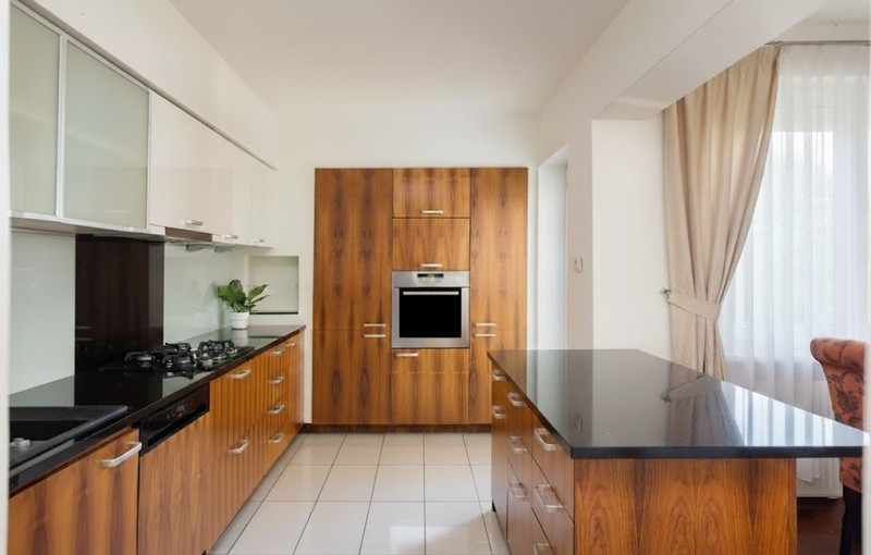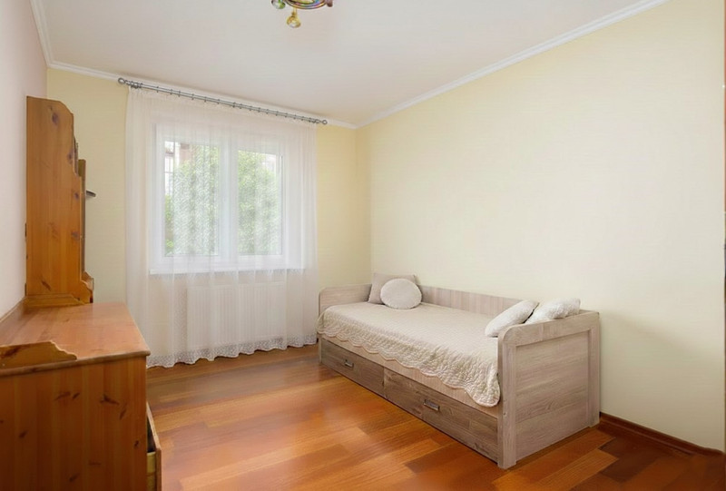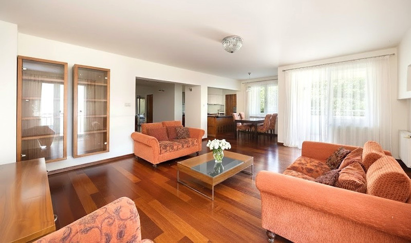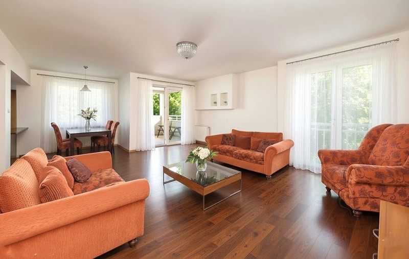 Przestronne, jednopoziomowe mieszkanie z dużym salonem i dodatkowo 4 sypialniami, balkonem i garażem.