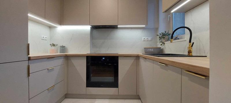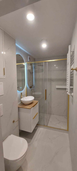 Mieszkanie zaprojektowane przez architekta, dzięki czemu przestrzeń została przygotowana w atrakcyjny, nowoczesny i funkcjonalny sposób. Wyremontowany 1,5 roku temu kompleksowo w najwyższym możliwym standardzie budowlanym (nowe ściany z pustaka, nowe podłogi betonowe, nowe tynki zatapiane w siatce zbrojącej, nowe gipsy, hydraulika, elektryka, siła do płyty indukcyjnej itd. – posiadam zdjęcia z każdego etapu)