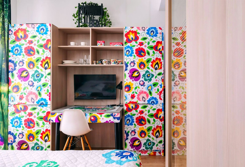 Wyjatkowa nowa i innowacyjna aranżacja w stylu folkloru łowickiego połączona z unikalną sztuką podwonej grafiki na ścianach sprawiają iż jest to ideala kawalerka pod wynajem dla menadżerów oraz ludzi ceniących spokój, wygodę i elegancję w jednym. Inwestycja idealna również dla singla czy studenta.
