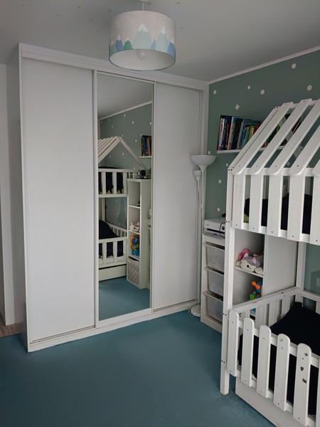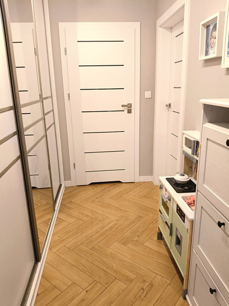 - Dwie szafy wbudowane (jedna w przedpokoju, druga w sypialni)