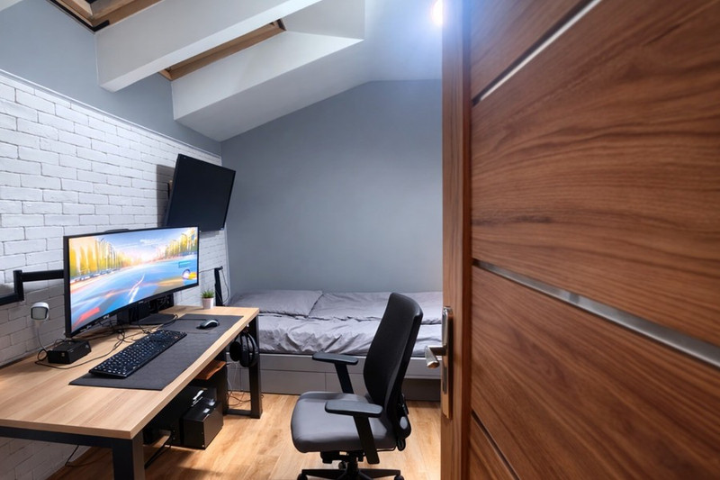 - dwupoziomowy układ mieszkania pozwala oddzielić strefę dzienną od prywatnej. Idealne dla rodziny, osób pracujących zdalnie lub jako inwestycja pod wynajem.