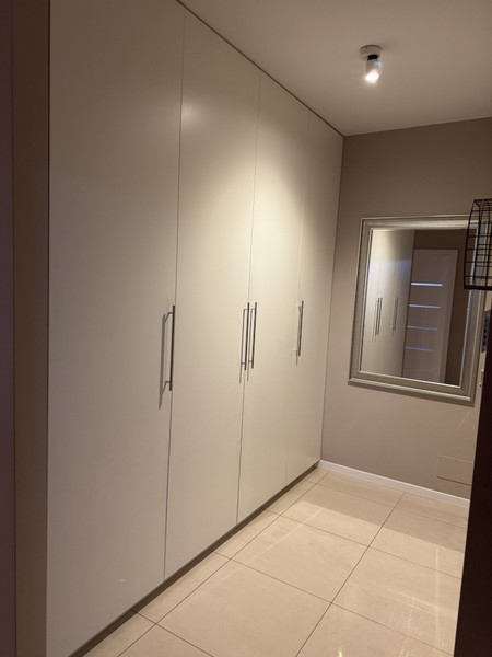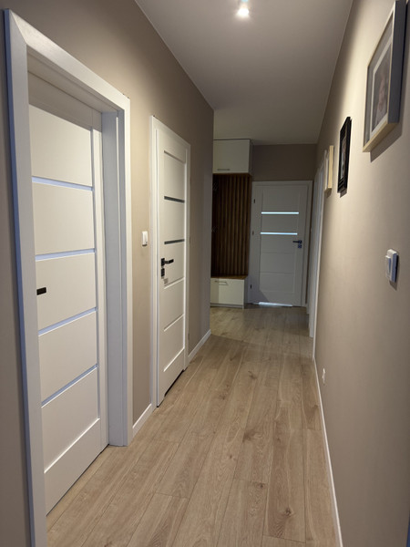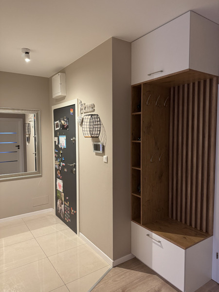 • Przedpokój: Z dwiema pojemnymi szafami w zabudowie.