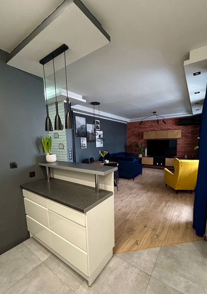 Pierwotnie lokal składał się z 4 pokoi, jednak wyburzona została przez nas ściana pomiędzy salonem, a sypialnią na poczet większego salonu.