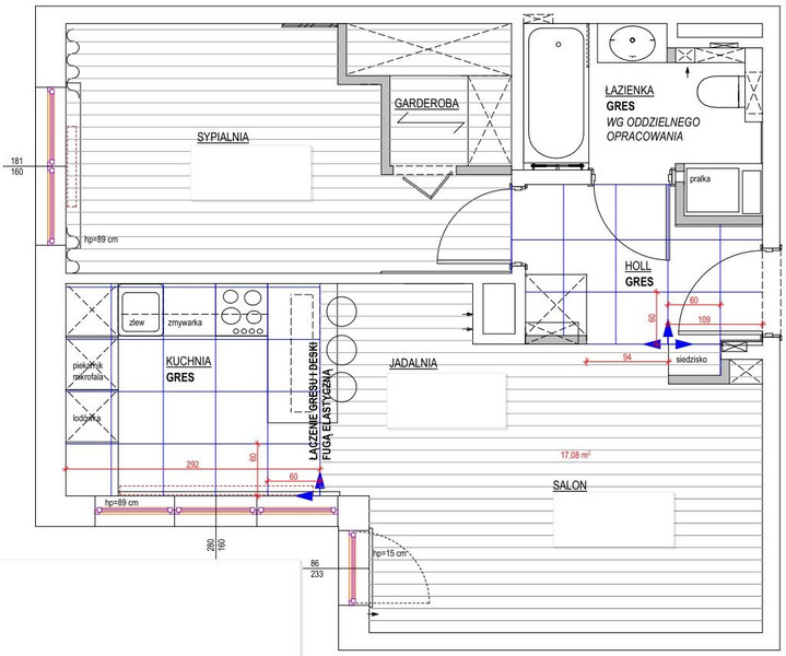 - salonu z aneksem kuchennym 24 m², ekspozycja południowo-zachodnia,