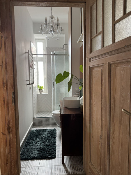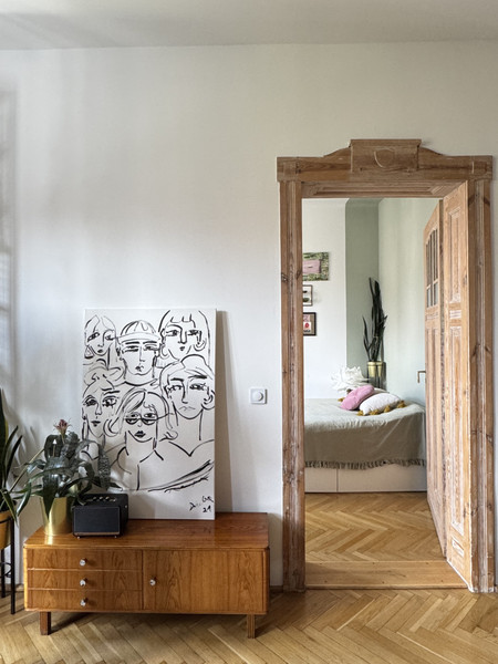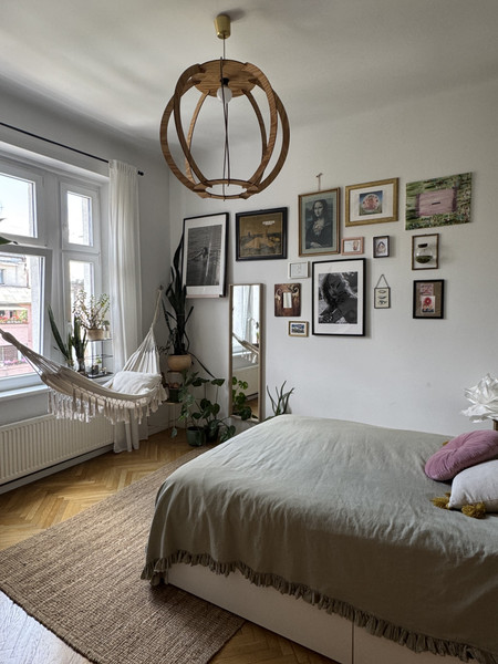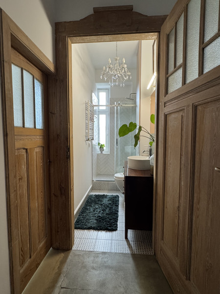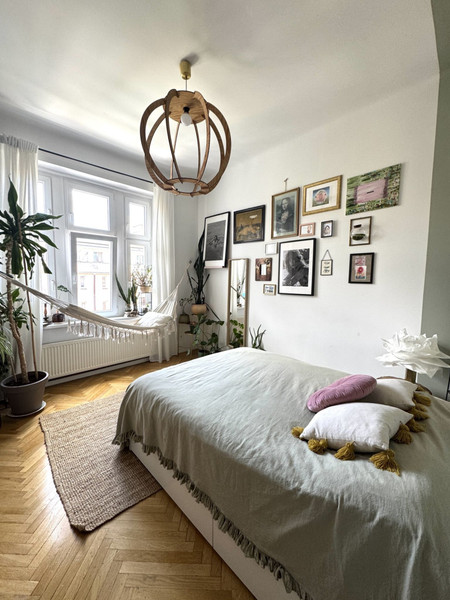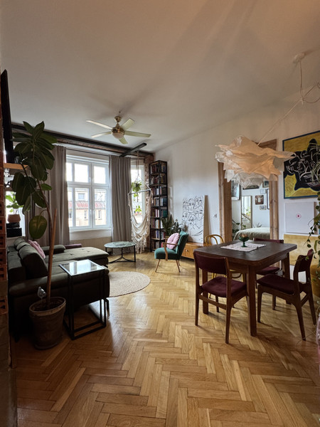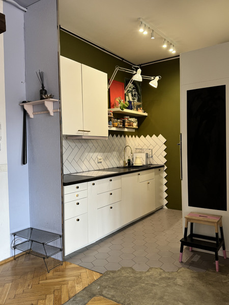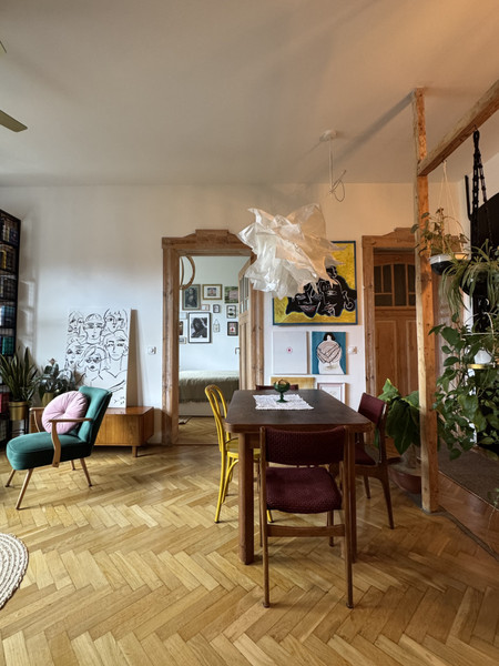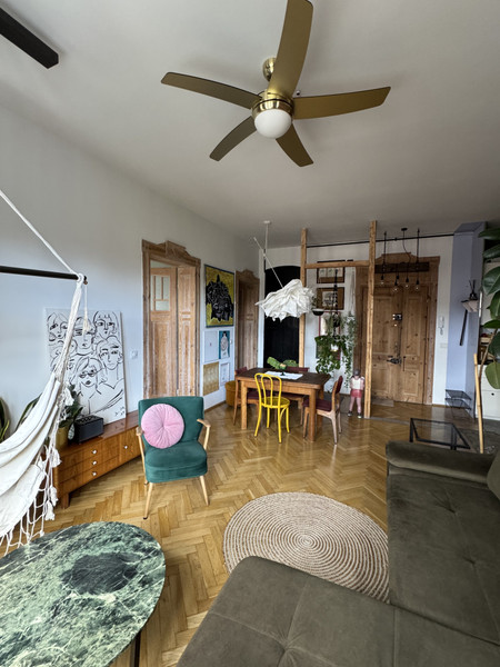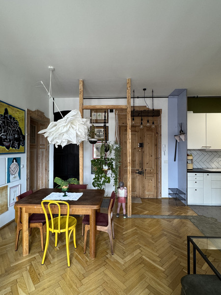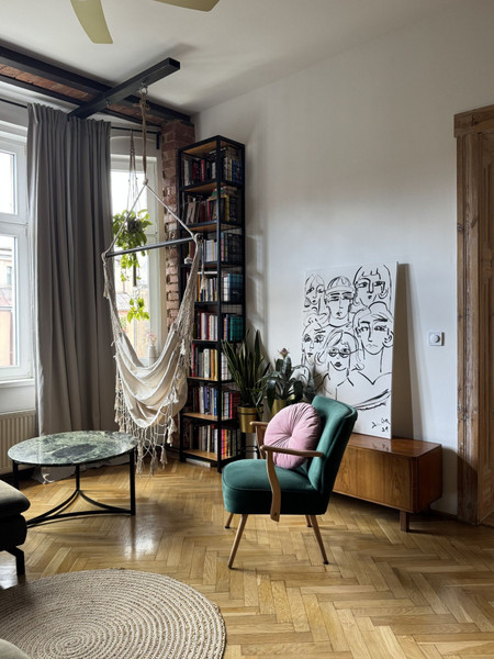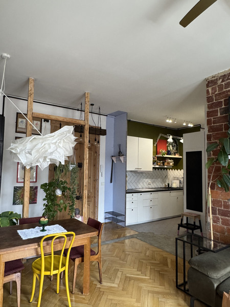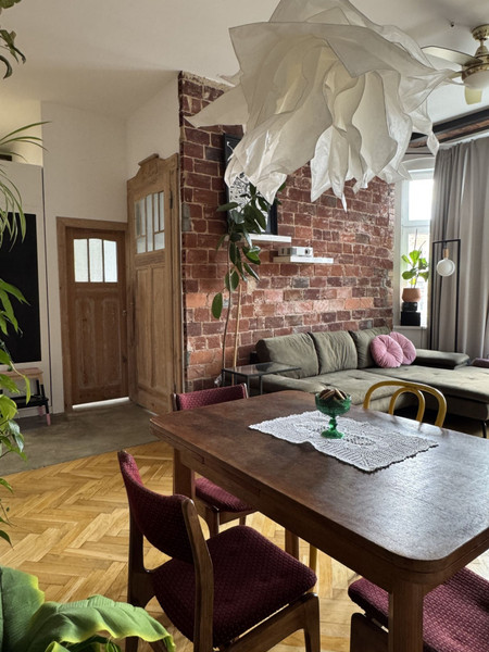 W całym mieszkaniu zachowano i odnowiono piękne drzwi, na podłodze pięknie odnowiony parkiet w jodełkę, jedna ściana w cegle. Dodatkowym atutem mieszkania jest jego wysokość- 3,4m co nadaje mu uczucia lekkości i przestrzeni. Okna od strony wschodniej dają dużo światła. Uliczka cicha i spokojna, z jednej strony zamknięta.
