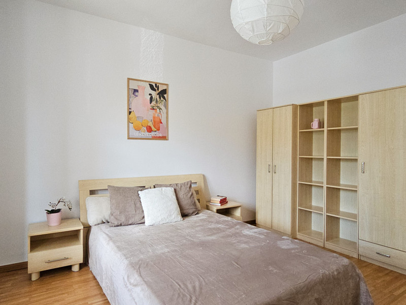 Spacious and quiet, with room for a bed, wardrobes, and even a workspace.