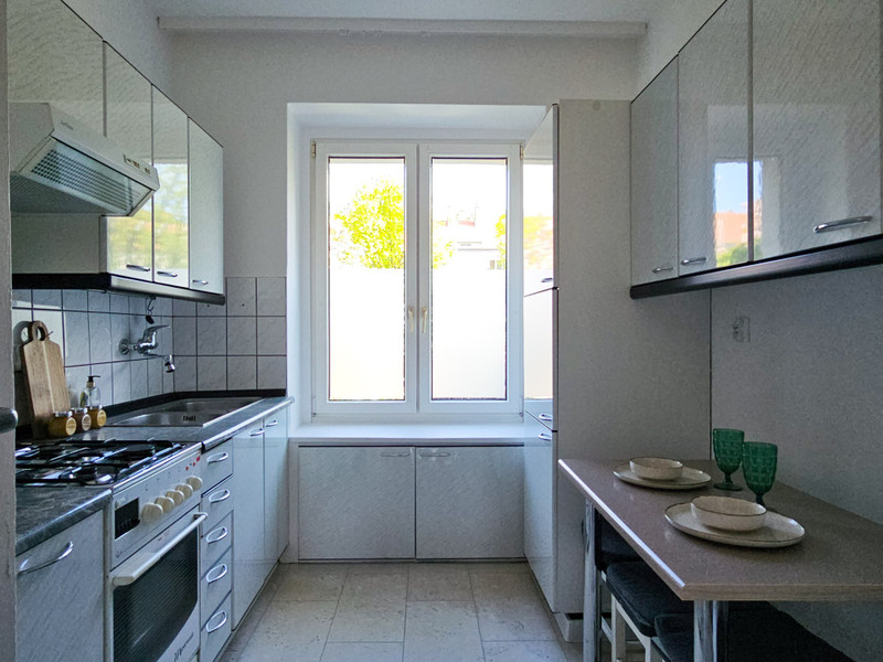 The property has full ownership with a land and mortgage register, free of any encumbrances. The usable area is approx. 58 m². A large basement storage unit belongs to the apartment.
