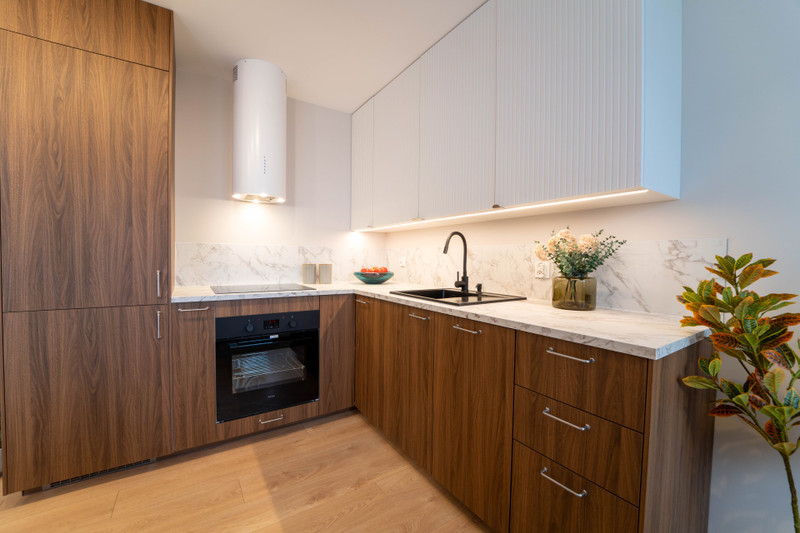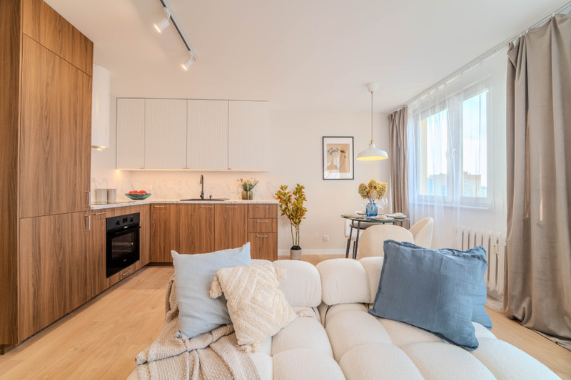 W mieszkaniu zamontowano klimatyzację oraz nową, zabudowę kuchenną, która została dopasowana do wnętrza, by zapewnić maksymalną wygodę użytkowania. Meble i AGD są nowe, a sprzęty posiadają 2-letnią gwarancję.
