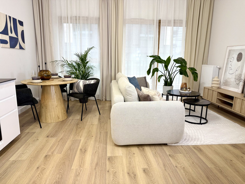 Mieszkanie o powierzchni 32,80m2, składa się z jasnego salonu z aneksem kuchennym, łazienki, przedpokoju oraz garderoby. Do mieszkania przynależy balkon. Mieszkanie ma 3,13m wysokości, dzięki czemu jest dużo możliwości aranżacyjnych. Kuchnia jest kompletnie wyposażona w zabudowę meblowa oraz niezbędne sprzęty (płyta indukcyjna, zmywarka, piekarnik, duża lodówka z zamrażalnikiem, zlew, okap), które są wliczone w cenę mieszkania. W łazience znajduje się kabina prysznicowa, WC oraz szafka z umywalką, nad która zostało zmontowane duże lustro. W garderobie jest miejsce na pralkę i suszarkę oraz pojemną szafę. Cena obejmuje również stół z krzesłami, rozkładaną kanapę, stolik kawowy oraz szafkę rtv. Miesięczny czynsz to około 370zł , w tym zaliczki na media: wodę i ogrzewanie.