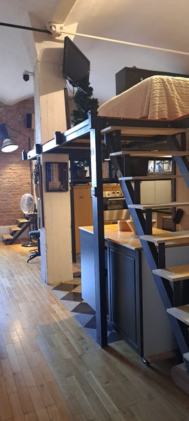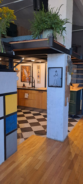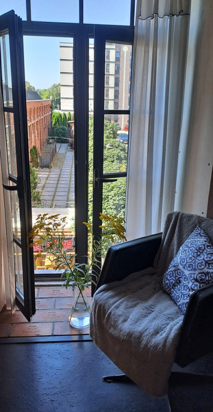 Loft położony na pierwszym piętrze budynku Starej Przędzalni w centrum Żyrardowa. Powierzchnia mieszkania to 77,3 m2, w tym antresola (16 m2) oraz duża łazienka z wanną o powierzchni 6,6 m2. Z łazienką sąsiaduje garderoba, w której podłączono pralkę i suszarkę.
