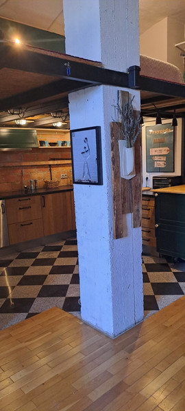 W części dziennej podłoga dębowa, w kuchni granitowa. W wyposażeniu kuchni znajduje się płyta indukcyjna, lodówka, zamrażarka oraz zmywarka. Loft nietuzinkowy przez niestandardowy podział powierzchni mieszkalnej.