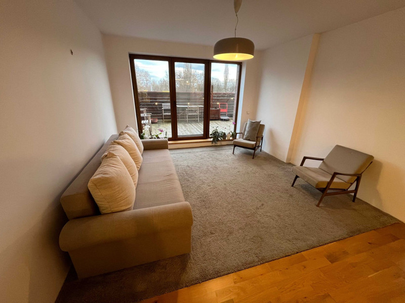 Do mieszkania przynależy ponad 30 m2 taras z bezpośrednim wejściem z salonu oraz miejsce postojowe na ogrodzonym parkingu przed blokiem.