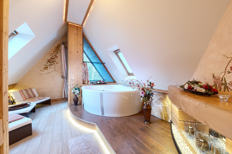 • Pokój Kąpielowy: Twoje prywatne SPA z wanną z hydromasażem.