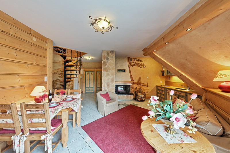 Dwupoziomowy apartament o powierzchni 85,40 m² oferuje przestronność rzadko spotykaną w zakopiańskim budownictwie: