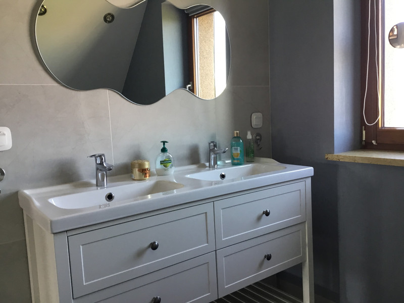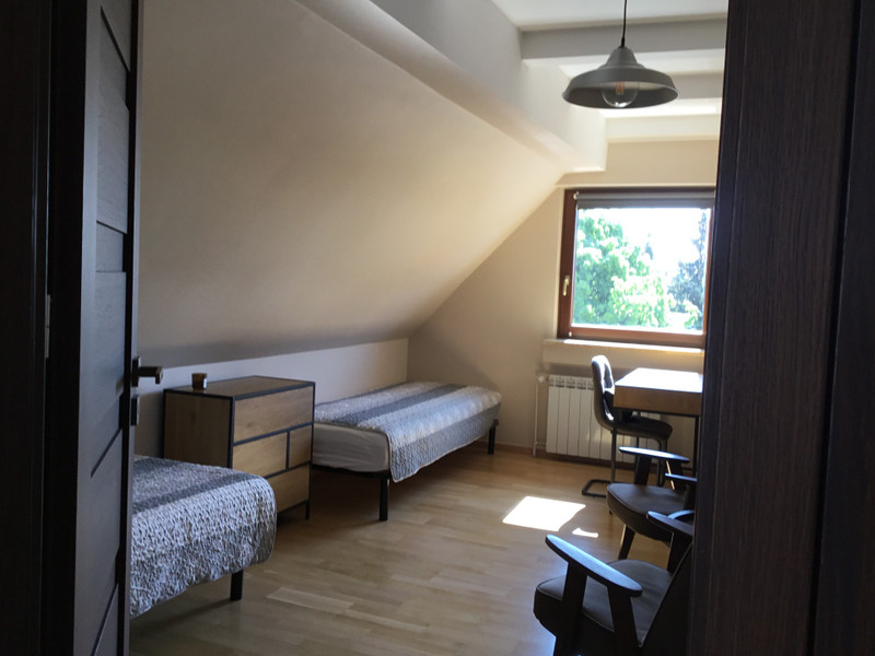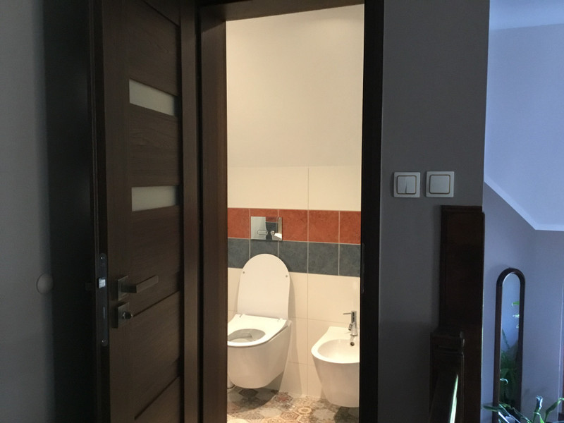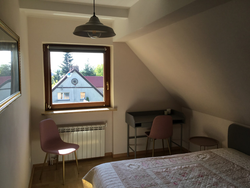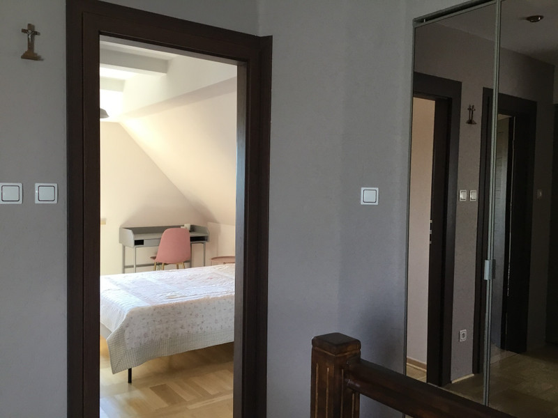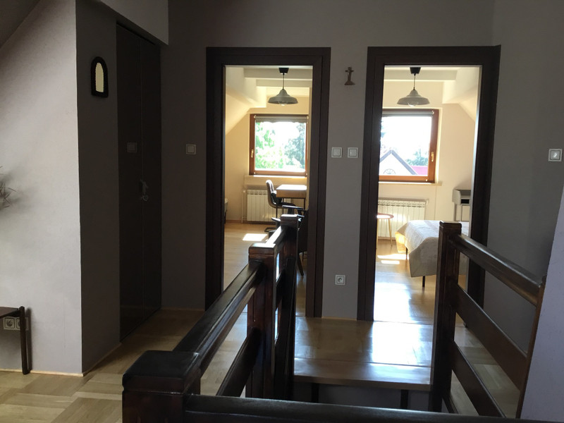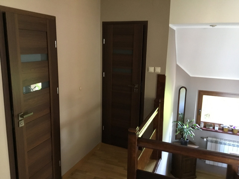 Druga kondygnacja to 3 duze sypialnie, kazda z osobna garderoba i lazienka z wanna, podwojna umywalka i oknem z pieknym widokiem.
