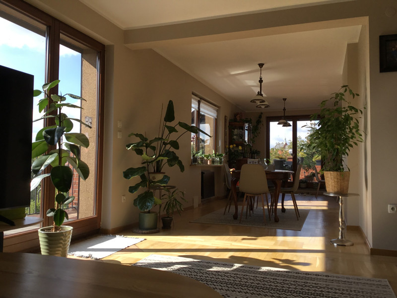 Luksusowa nieruchomosc urzadzona pod klucz w miejscu idealnie polozonym. Zapewnia prywatnosc jak rowniez bajeczne widoki na miasto i okolice. Zajmuje dwie kondygnacje w bardzo solidnym budynku. Ze wzgledu na skosy, po podlogach powierzchnia uzytkowe jest znacznie wieksza (240m.)