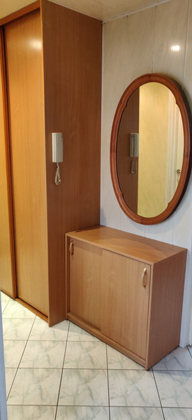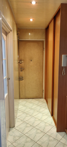 Przedpokój na tyle szeroki, że znajduje się tam duża szafa przesuwna, w której sporo rzeczy się mieści.