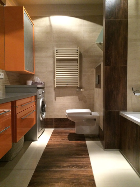 w mieszkaniu znajduje się łazienka z pralką, wanną i wc.