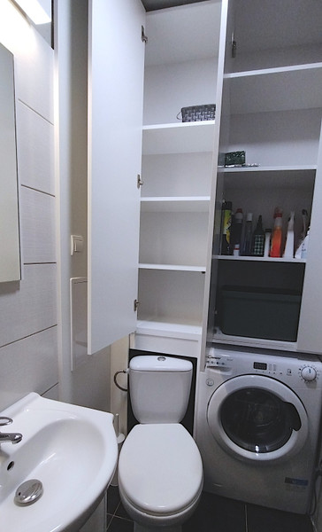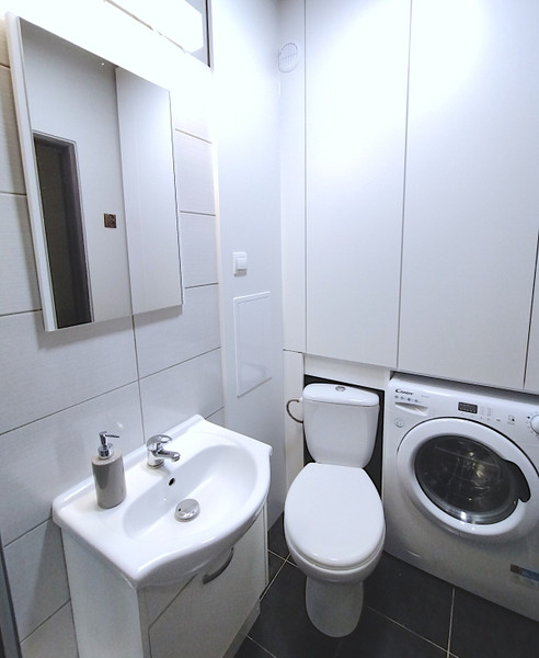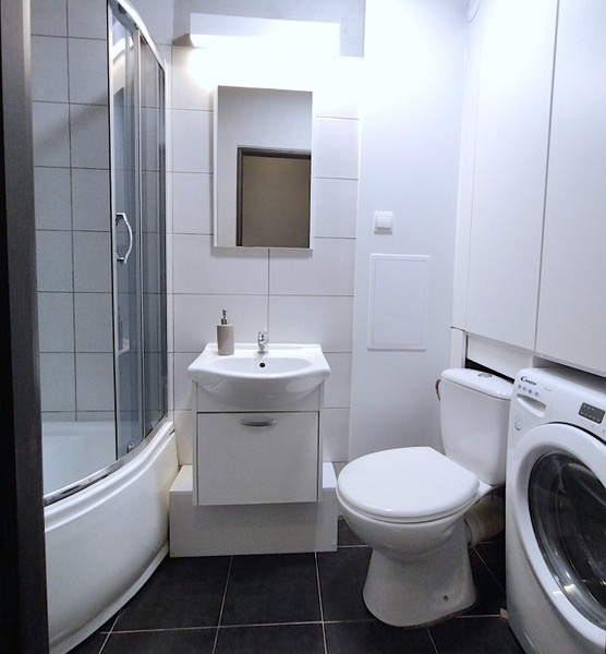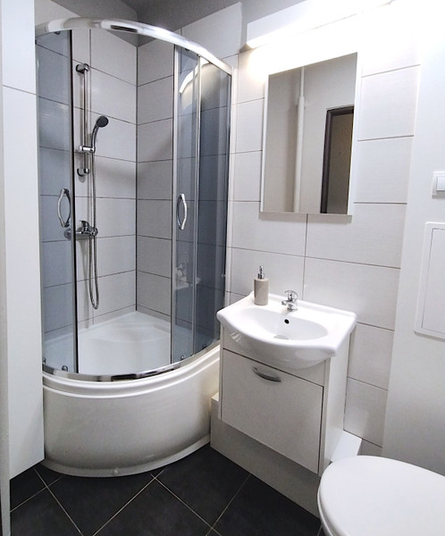 * łazienka - prysznic, umywalka, pralka, lustro, nowa zabudowa z bardzo dużą ilością miejsca do przechowywania, wc;