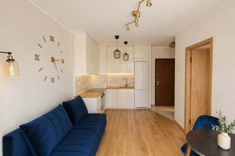 Nowoczesne 2-pokojowe mieszkanie z prywatnym ogródkiem (30 m²), położone na zamkniętym, strzeżonym osiedlu Aroma Park – Białołęka.