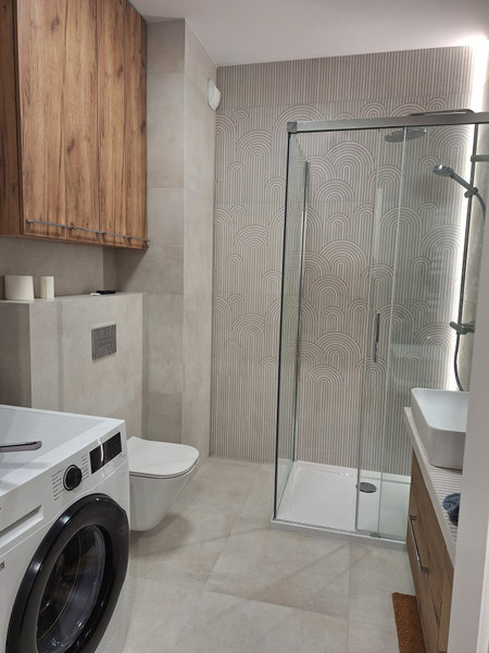 Łazienka, Przedpokój, Przestronna loggia 8,5 m2. Mieszkanie klimatyzowane. Parking w garażu podziemnym.