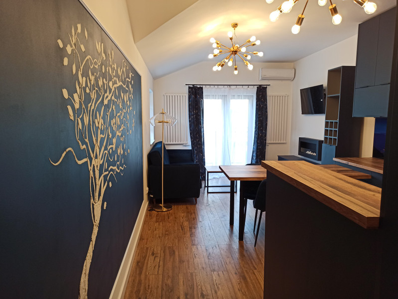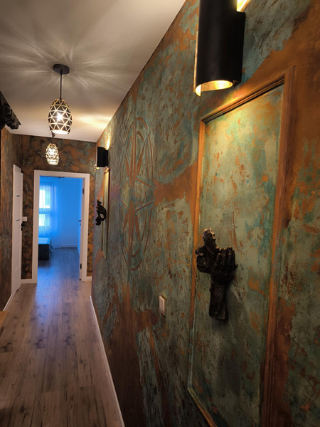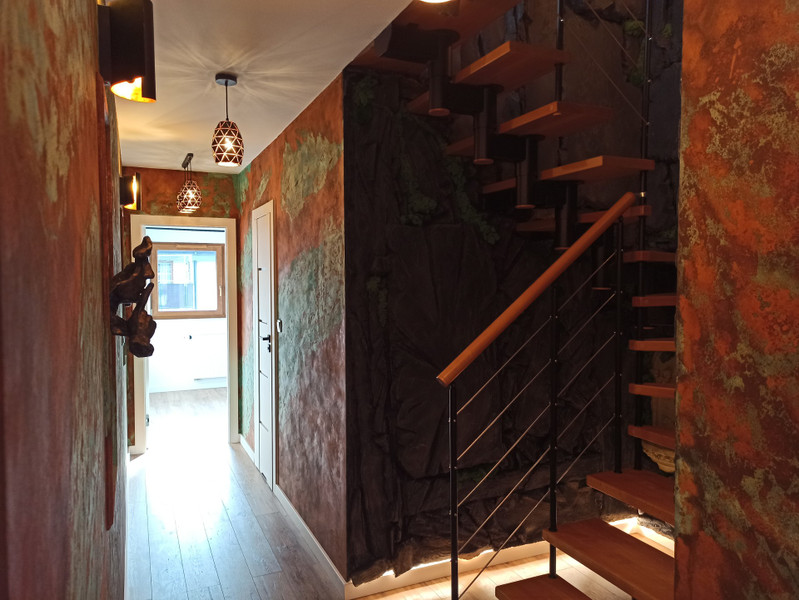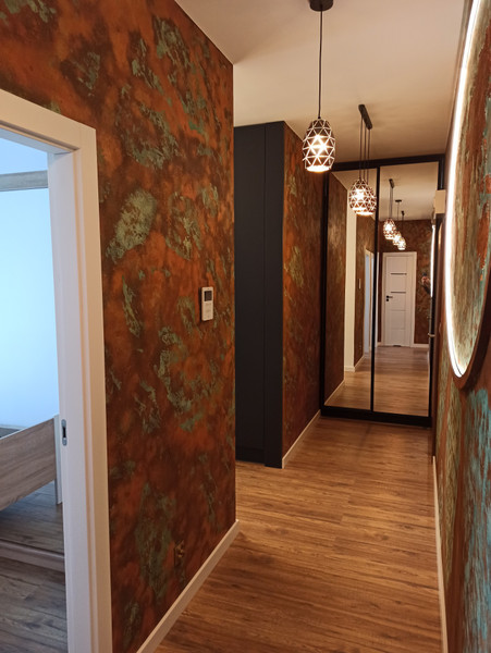 Nowy, urządzony, inny niż wszystko co do tej pory widziałeś, piękny apartament w nowym budynku na nowym osiedlu. 3 piętro z 3. Dwu poziomowy, 4 sypialnie, dwie łazienki oraz salon z kuchnią. Najwyższy standard materiałów i wykonania. Korytarz z tynków robiony kwasem aby uzyskać efekt rdzy i turkusu. Wejście na piętro do ostatniej sypialni, wykonane z imitacji skał, podświetlone ledami (60m ledów ukrytych w skałach), zamontowana fontanna ścienna, prawdziwy naturalny mech, klatka ma wysokość około 7m co robi niesamowite wrażenie i jest to niepowtarzalny wygląd. Duży balkon.