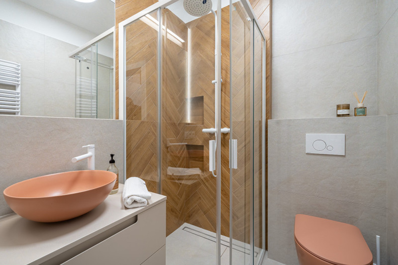 • Modern bathroom with walk-in shower