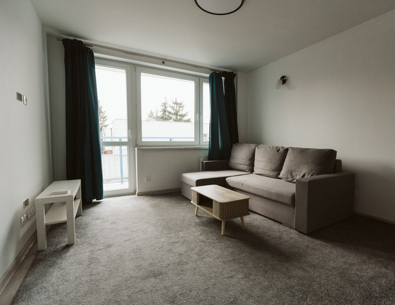 • jasny pokój z wyjściem na balkon (kanapa, stolik)