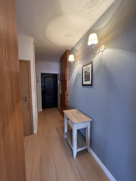 Mieszkanie składa się z dużego ustawnego pokoju z rozkładaną kanapą, stołem z krzesłem, dwoma komodami i małym stolikiem, kuchni znajduje się stół z krzesłami i przestronna kuchnia w zabudowie z dużą przestrzenią do gotowania. W przedpokoju duża szafa z lustrami.