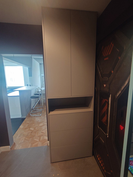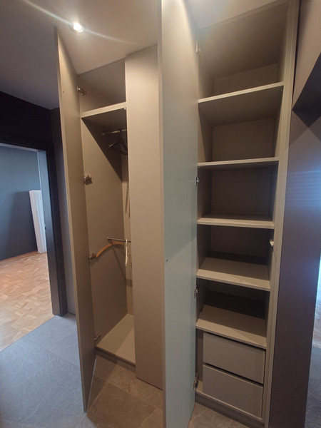 W przedpokoju spore szafy w zabudowie oraz garderoba.