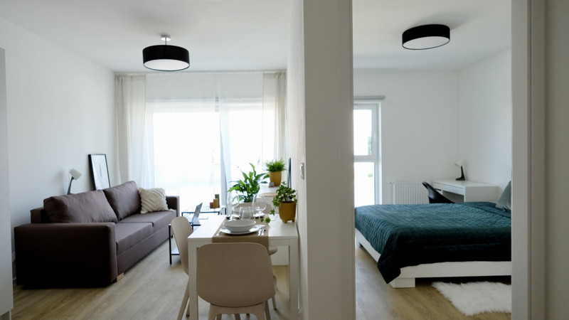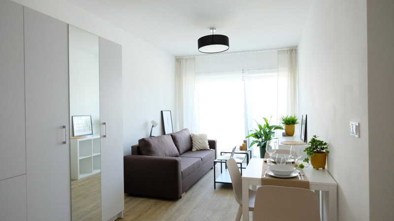 The apartment is located in a new, closed housing estate at 21S Wróblewskiego Street. Well-connected to the center of Łódź - bus line 55 to Piotrkowska Street.