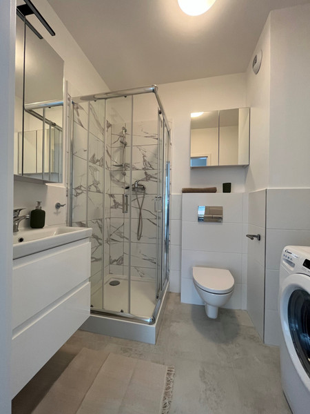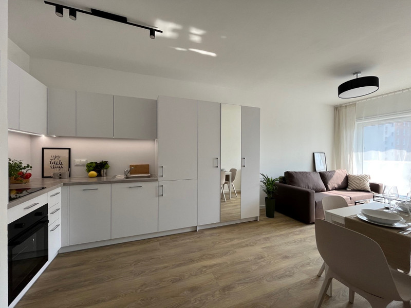Hello, the subject of the announcement is a double-room with an area of 40 m² available for rent immediately. The apartment is furnished and equipped with household appliances such as a washing machine, dishwasher, refrigerator, induction hob, oven with extractor hood. The apartment has a large balcony. Pets are welcome. Internet is included in the price - speed up to 300mb/s. Rental service (caretaker/property manager) is provided.