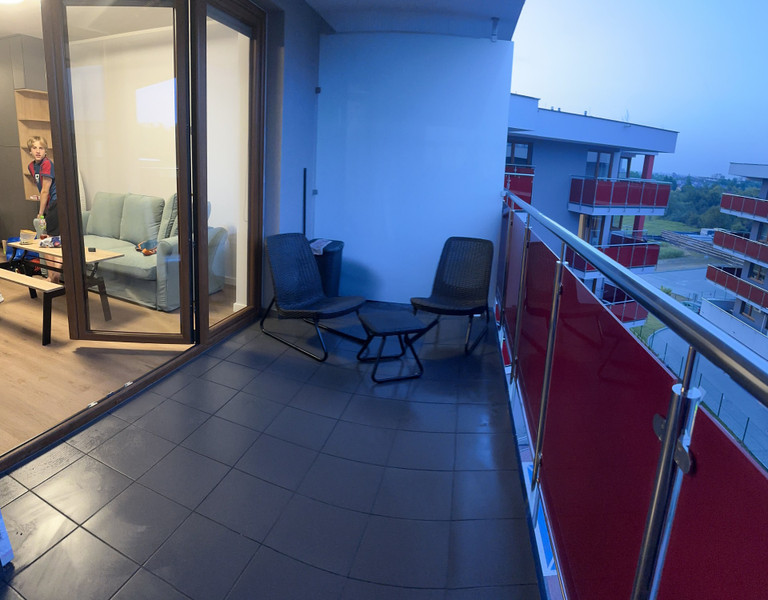 Zaletą mieszkania jest duży, szeroki balkon na którym można doskonale wypocząć w ciepłe dni.