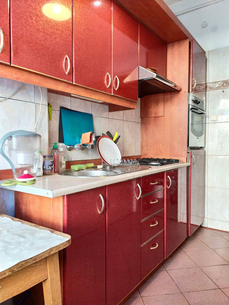 Kuchnia jest w pełni wyposażona w sprzęt AGD (meble w zabudowie - piekarnik, lodówka, 4 palniki gazowe, wyciąg).