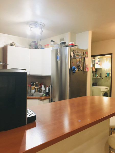 w kuchni: lodówka, zmywarka, kuchenka mikrofalowa, meble w zabudowie,