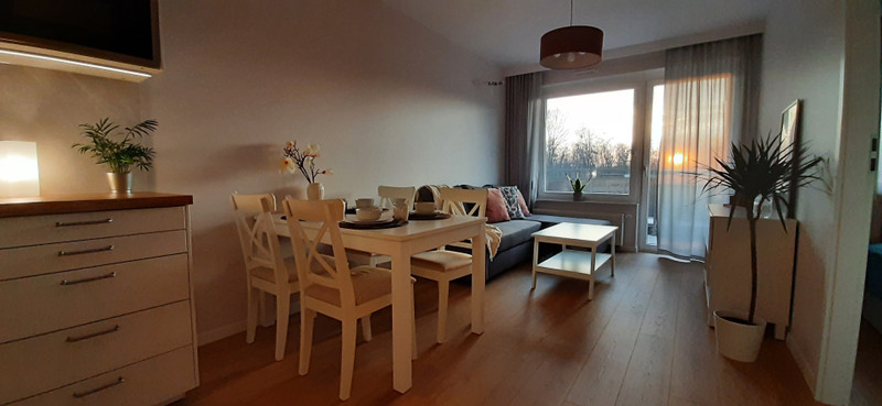 Mieszkanie jest w pełni umeblowane i wyposażone. W skład mieszkania wchodzą: