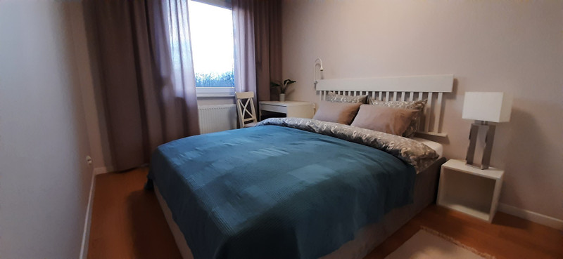 • Sypialnia (duże łóżko, przestronna szafa, regał i biurko)