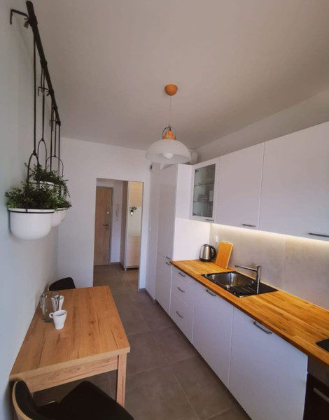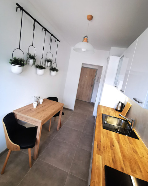 Mieszkanie jest w pełni umeblowane i utrzymane w wysokim standardzie, doskonałe dla osób ceniących komfort i funkcjonalność. Wyposażone zostało w nowoczesny sprzęt AGD, takie jak pralka, lodówka z zamrażarką, piekarnik, płyta indukcyjna i zmywarka. Dodatkowo, do dyspozycji lokatorów są również dodatkowe urządzenia kuchenne, takie jak czajnik, toster, robot kuchenny, oraz drobne wyposażenie kuchni, w tym zastawa stołowa. Internet światłowodowy w mieszkaniu ze wszystkimi głównymi operatorami i dostawcami w Polsce.