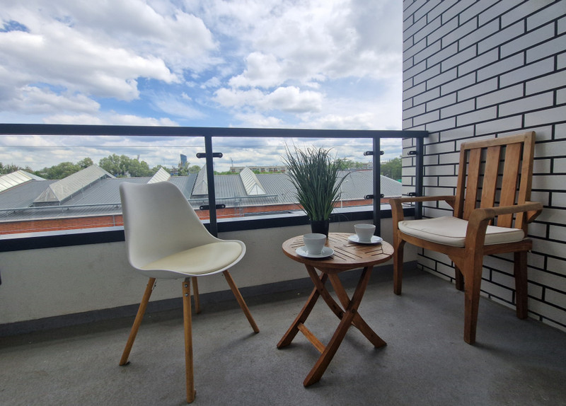 A very nice small appartement with kitchen, bathroom and a balcony. The kitchen is equipped with an oven, cooktop, microwave, fidge. The bathroom has a shower cabin, suspended toilet seat an a washing machine. There is a monitored bicycle storage just outside the building.