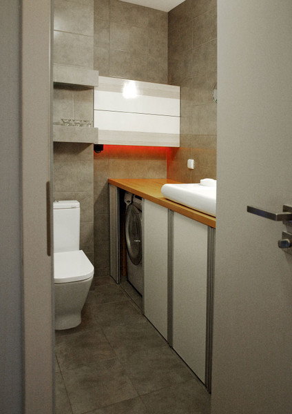 Łazienka: wanna z wydzieloną przestrzenią i deszczownicą, toaleta, duży drewniany blat z nadblatową umywalką i szafkami pod blatem, pralka, szuflady na pranie, szafki, wbudowane półki, nastrojowe oświetlenie przy którym poczujesz się jak w SPA oraz piękne nowoczesne baterie łazienkowe.