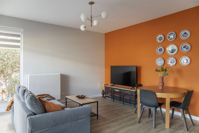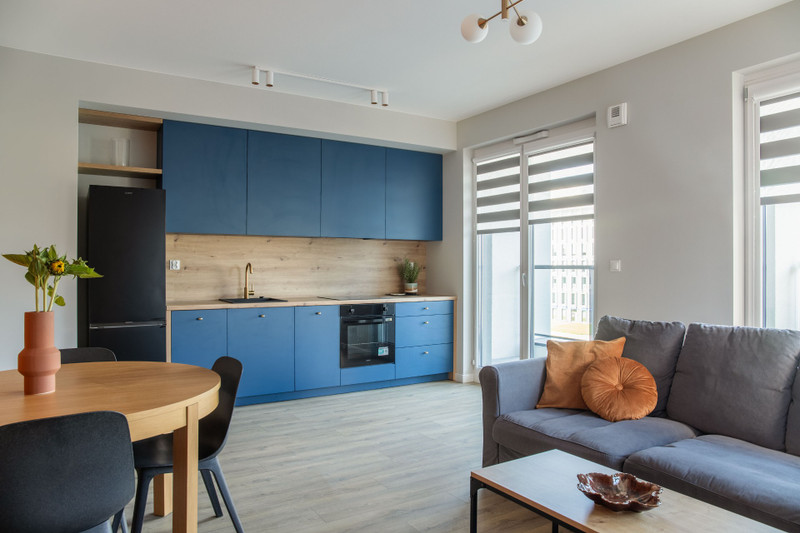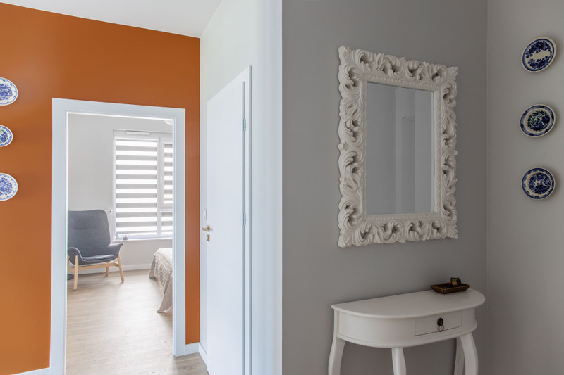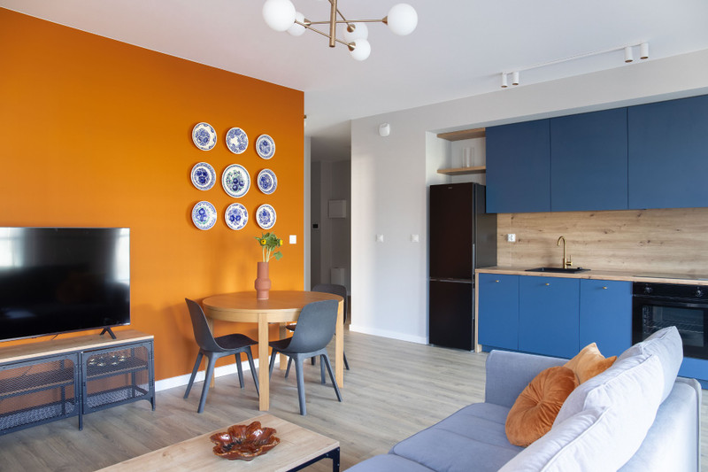 Apartament w pełni wykończony - przyjemna kolorystyka, elementy vintage tworzą przytulne i pełne charakteru wnętrze.