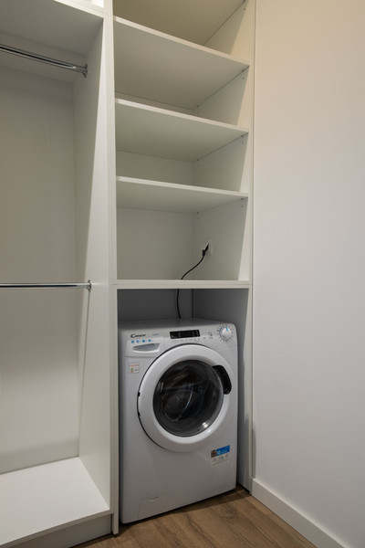 Mieszkanie składa się z salonu z aneksem kuchennym, komfortowej sypialni, przestronnej łazienki, garderoby z pralką oraz funkcjonalnego holu. Całość jest w pełni umeblowana i wyposażona w wysokiej klasy sprzęty, gotowa do wprowadzenia od zaraz.