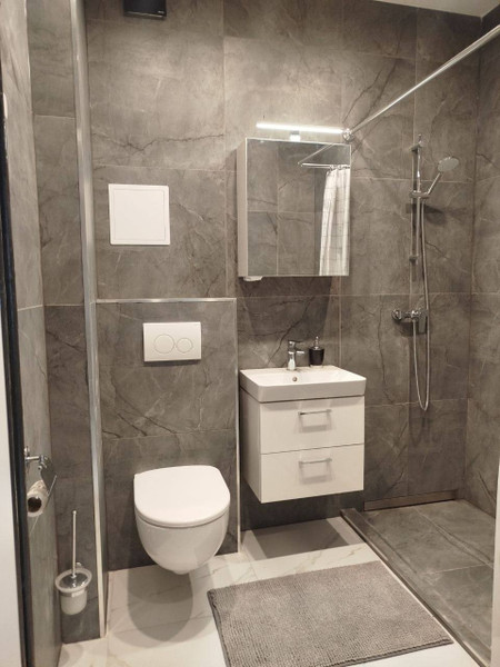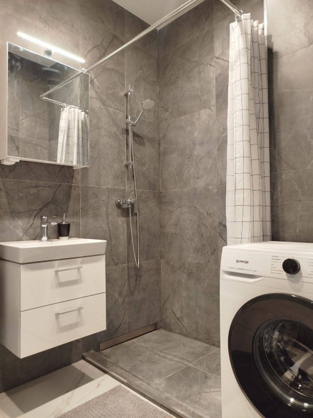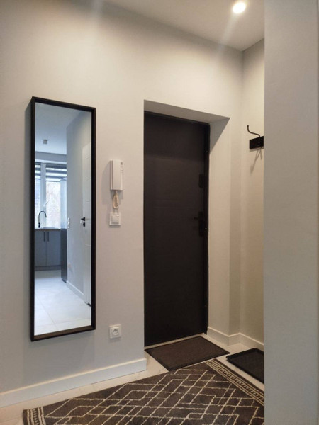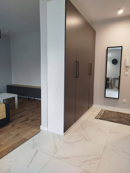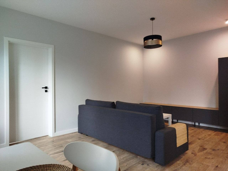 Mieszkanie przeszło generalny remont i nie było wcześniej zamieszkałe - wszystkie sprzęty i wyposażenie są nowe. Aneks kuchenny wykonany jest w zabudowie i posiada: lodówkę, zmywarkę, płytę grzewczą oraz piekarnik. W mieszkaniu znajdują się dodatkowo sofa, łóżko oraz szafy. W łazience dostępna jest pralka.