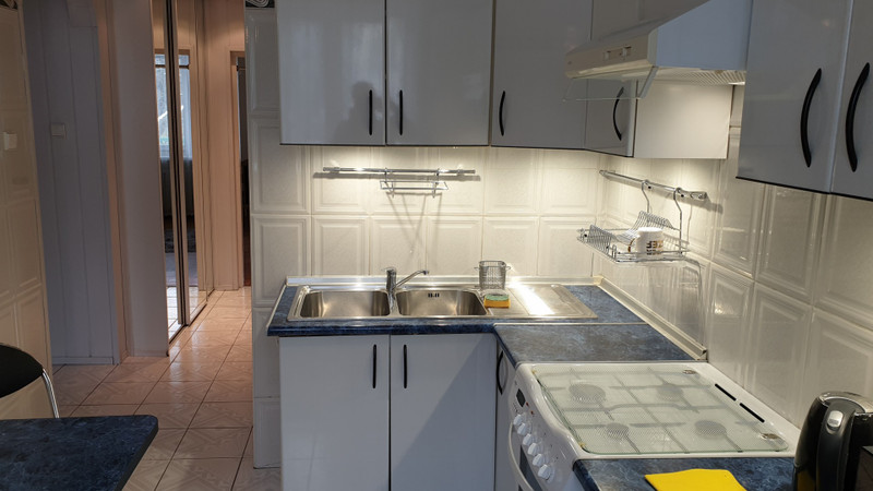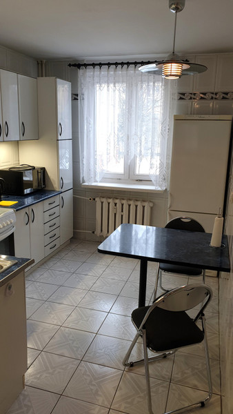 Większy pokój z oknami na południe i wyjściem na duży balkon. Oddzielna, wyposażona kuchnia i mniejszy pokój z oknami na północ. Łazienka z wanną, oddzielna toaleta, przedpokój z szafami wnękowymi. Wszystkie media z sieci miejskiej.