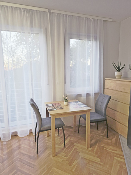 • Widny duży, ustawny pokój z częścią sypialnianą i wypoczynkową,